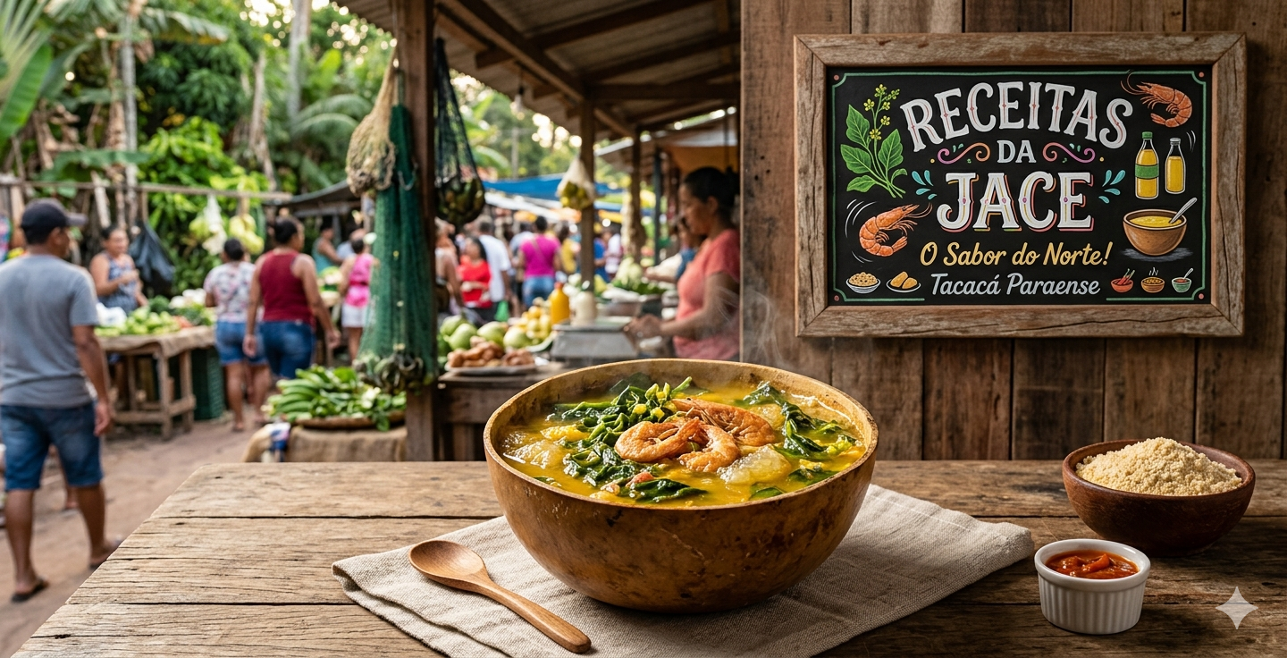 Continue LendoO Tacacá é uma explosão de sabores amazônicos! Servido tradicionalmente em cuias, ele combina a acidez do tucupi, o formigamento do jambu e o sabor marcante do camarão seco. Ingredientes (para 4 porções): Modo de Preparo: Dicas Adicionais para o seu Tacacá: Receitas da Jace ❤️